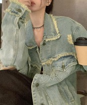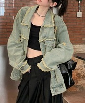ヴィンテージ感デニムアウター レディース レトロGジャン 韓国風ライトアウター デニム羽織長袖 ゆったりジージャン春秋服