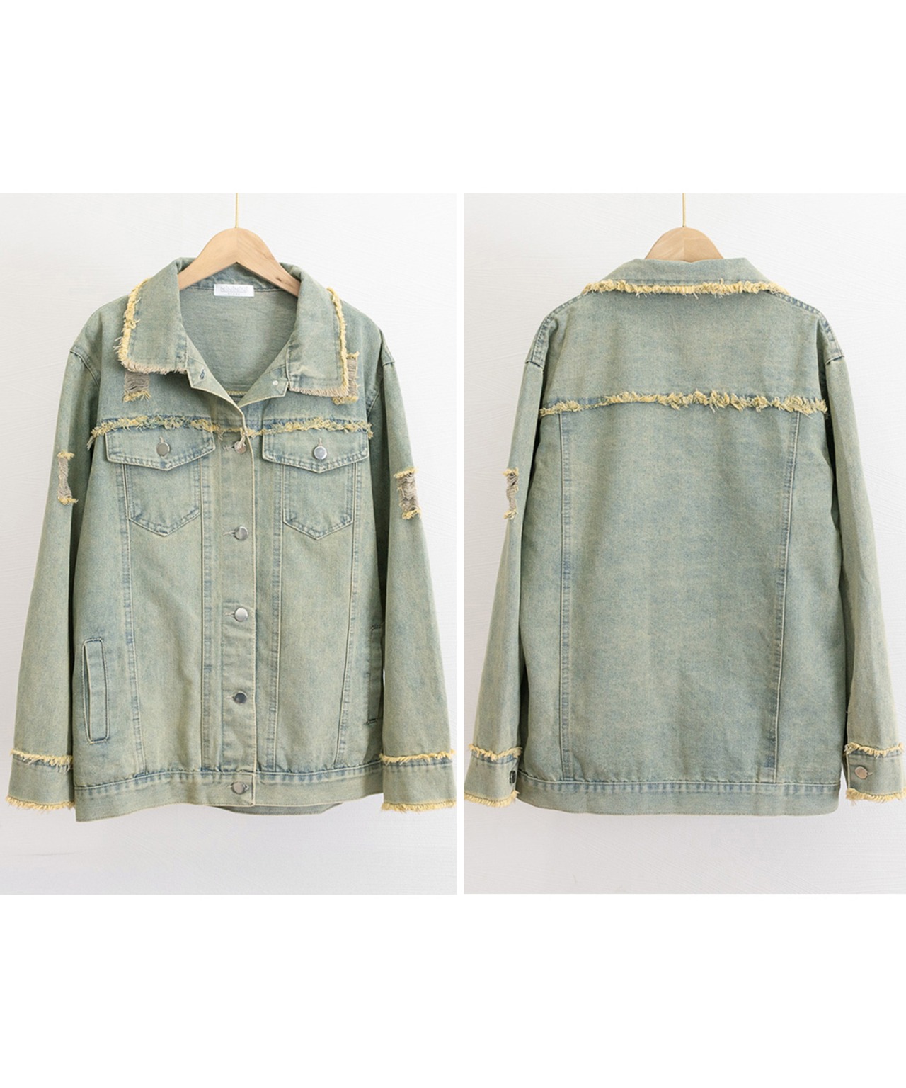 ダメージ加工が施されたヴィンテージ風デニムジャケット。