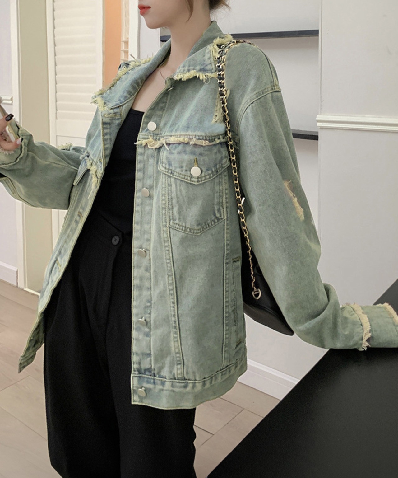【日本倉庫即納】 フリンジデニムジャケット ダメージデニム
