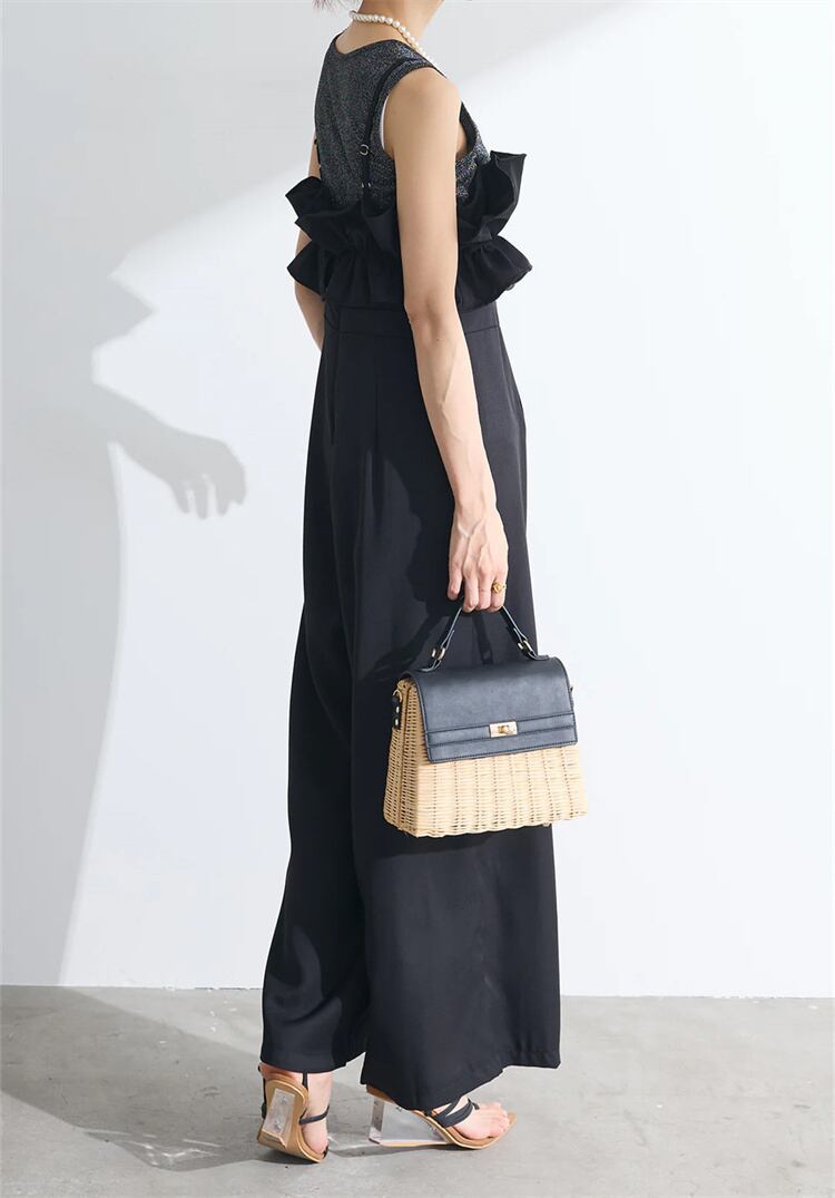 今っぽトレンド【2025新作】フリルデザイン オーバーオール ワイドパンツ サスペンダーズ ストラップ付き