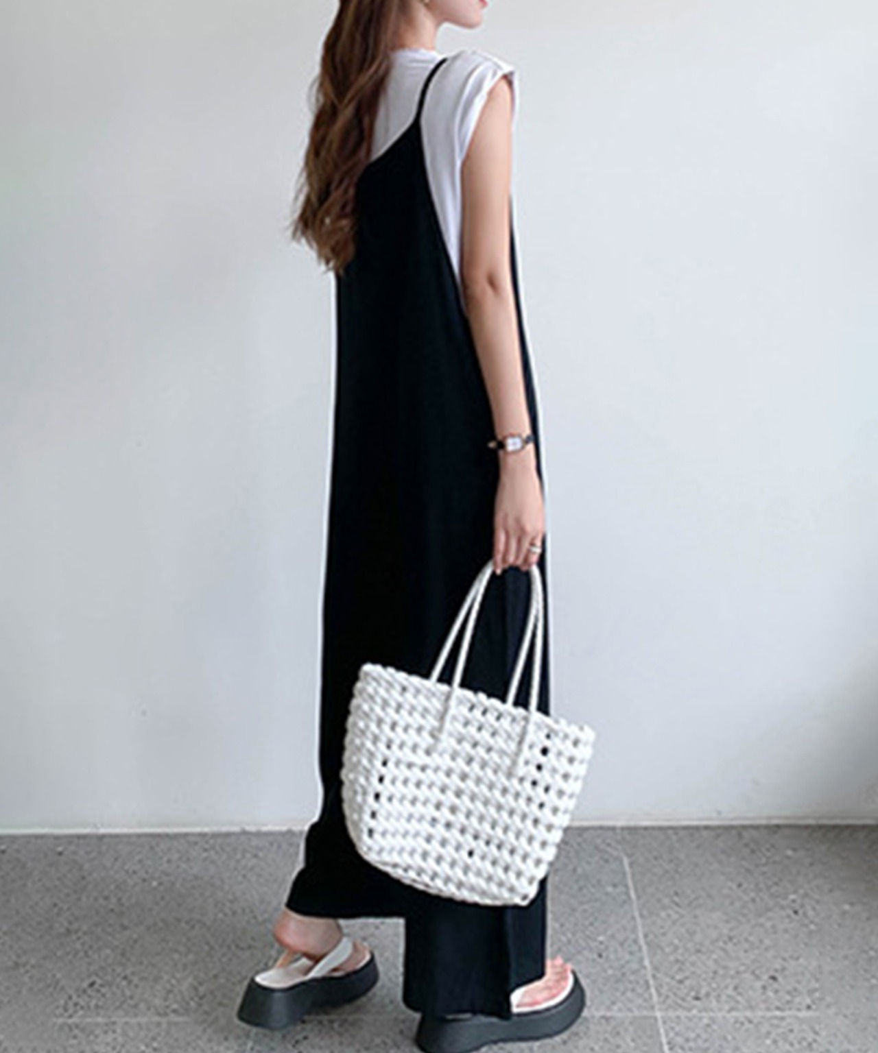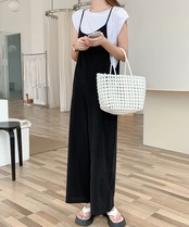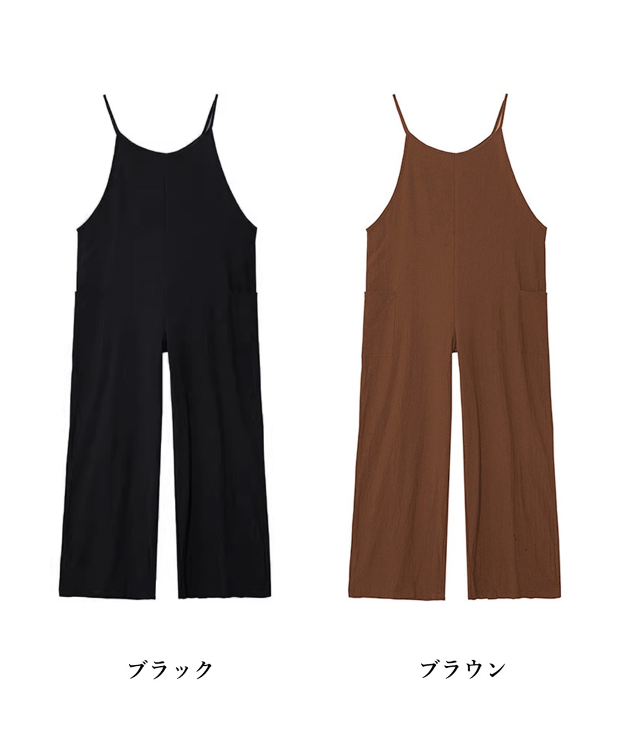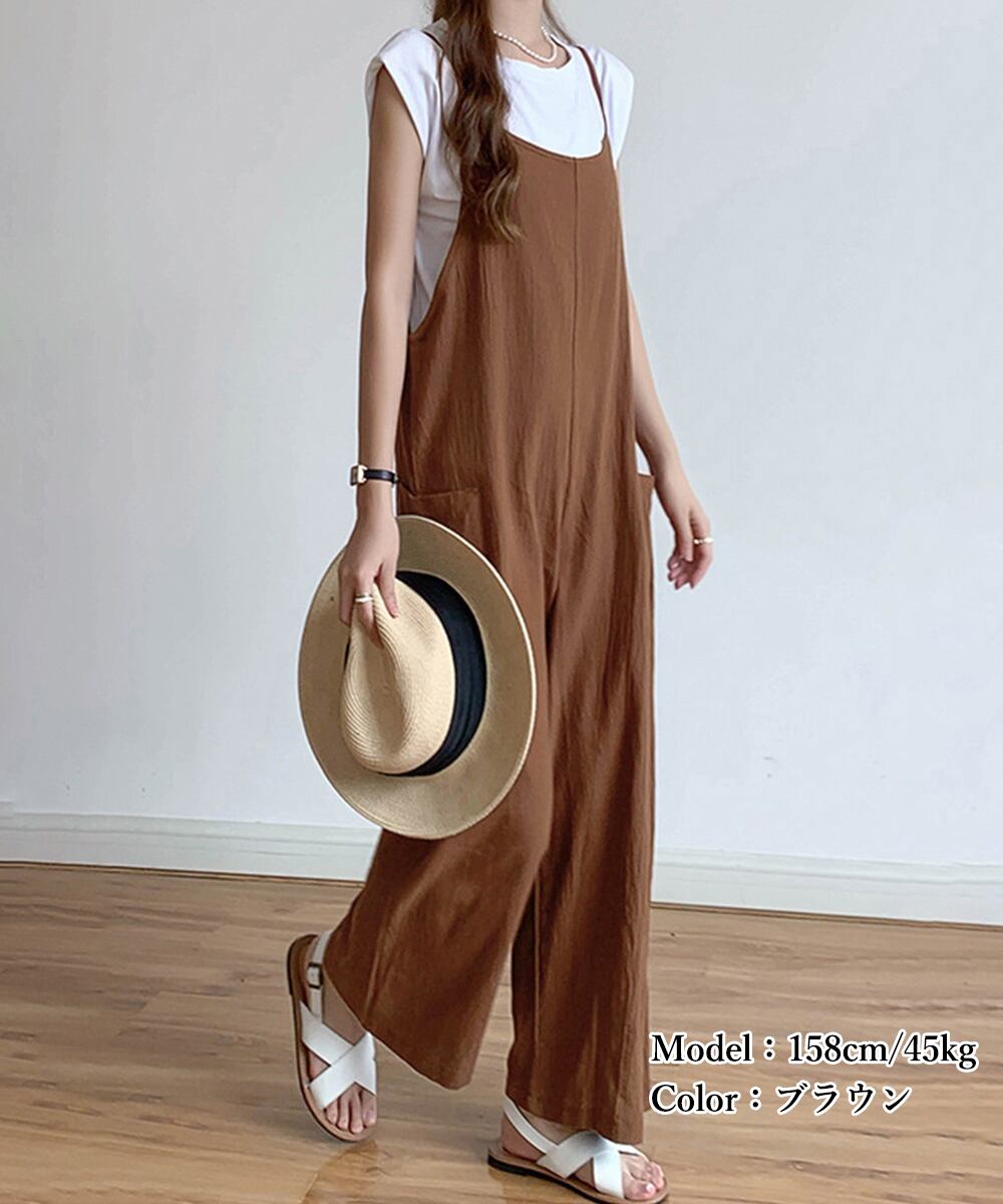 ワイドパンツ レディース 着やせ オーバーオールパンツ ポケット付き キャミ サロペット ハイウエスト 体型カバーパンツ
