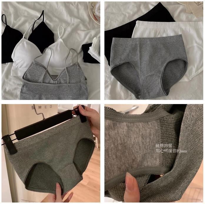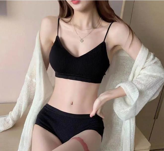 新入荷★パッド付き ノンワイヤーブラ ブラ+ショーツセット カップ付きブラジャー★3色