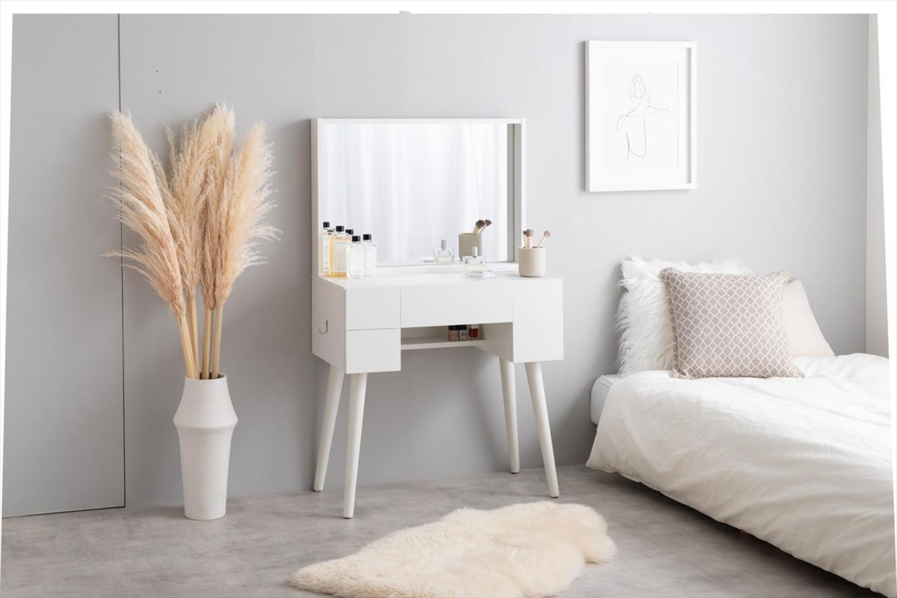 大きな鏡と広い作業スペースでのびのびメイクが叶う『Emu(エミュ)』ドレッサーデスク