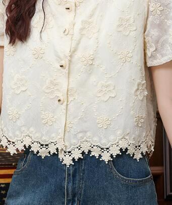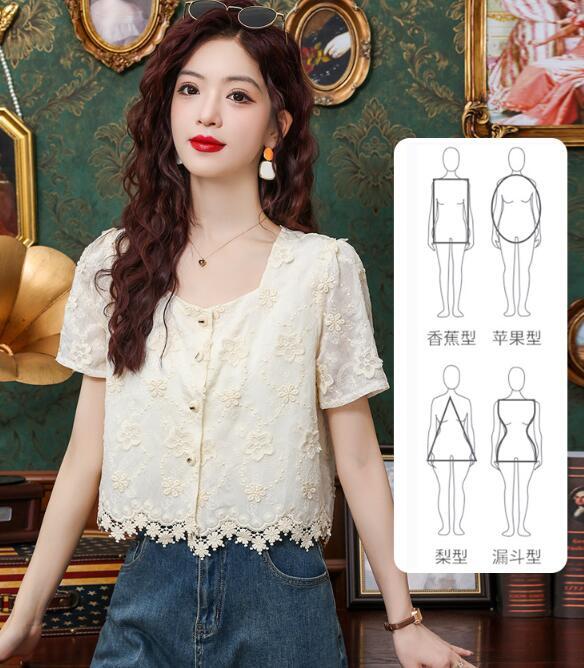2025新作 レディース 婦人服 トップス ショート丈刺繍半袖上着★SーXL