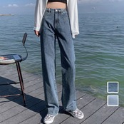 ハイウエスト セミワイドデニムパンツ 脚長見せ ロングパンツ ゆったり 着やせ ボトムス 韓国風 オルチャン定番デニム